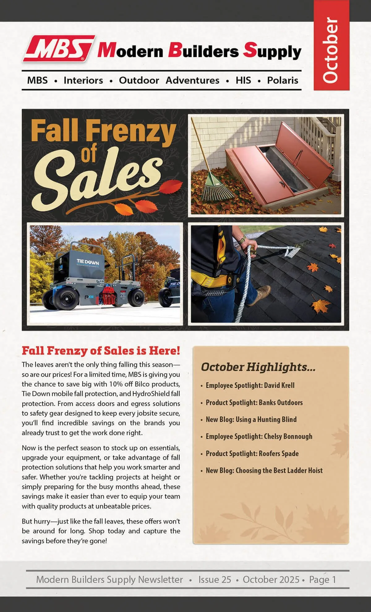 Stay up to date with the latest trends, tips, and industry news in the construction world with the Modern Builders Supply Monthly Newsletter. Each month, we curate valuable insights and resources to help professionals stay informed and inspired. From product spotlights to expert advice, our newsletter has everything you need to take your projects to the next level. Subscribe today and join the MBS community!